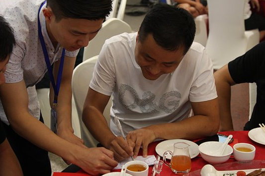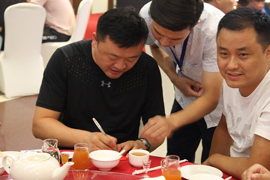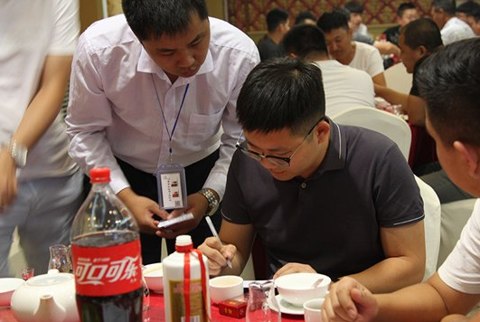 在講到貴賓陳釀代理商運營模式的時候大家都聽的全神貫注,多次用掌聲表示對該模式的認同和贊許。會議還沒有結束,就主動找到現場的工作人員進行進一步的詳細了解。之后很多代理商紛紛拿出手機、銀行卡現場交錢簽約代理。