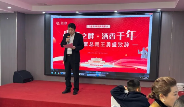 集團總裁王勇盛總結發言,王總從品牌戰略高度闡述了陜西白水杜康立足陜西、輻射全國的發展布局,并強調華州區旗艦店開業是品牌深化區域市場、服務本地消費者的重要一步。