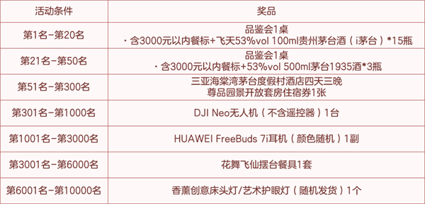 其中最受矚目的是“購物有禮 消費回饋季”。在11月29日至12月25日期間,用戶在i茅臺每消費1元即得1積分,最終總積分排名前1萬的用戶將獲得階梯式重磅獎勵。榜單前列的獎勵尤為豐厚———排名第1至第20名的用戶,將獲得參與一桌品鑒會的機會,其中包含3000元以內餐標,以及15瓶飛天53%vol 100ml貴州茅臺酒在內的尊享禮遇,排名第21名至第50名的用戶,同樣將獲得參與一桌品鑒會的機會,其中包含3000元以內餐標以及3瓶500ml茅臺1935酒,此舉無疑將點燃大家的消費熱情。