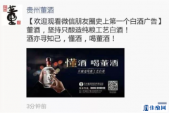 2015年01月22日16點,朋友的微信圈突然被董酒的廣告刷屏了:歡迎觀看微信朋友圈史上第一個白酒廣告。...