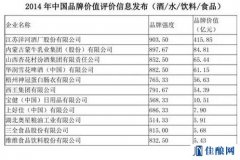 • 中國酒水食品類品牌價值信息發布 洋河居首 日期:2014-12-18 08:53:00
