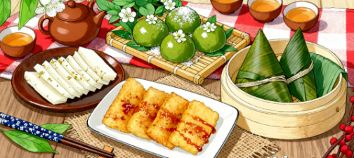 糯米在這里被做成百變佳肴:清明時節的青團,端午的粽子,冬日的年糕。但最動人的,還是尋常巷口的那份粢飯團。熱騰騰的糯米在掌中鋪開,包進剛出油鍋的酥脆油條,再撒上一把肉松和咸菜。咬下去的瞬間,米的軟糯、油的香脆、餡的豐腴在口中次第綻放。江南的米食,是寫給日常生活的情詩,它將風物揉進點心,讓每一個平凡的日子都充滿了細膩的儀式感。