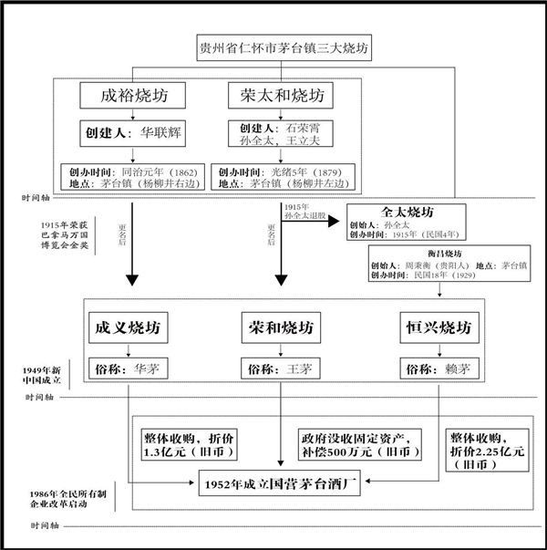 1951年,成義燒坊被仁懷縣人民政府購買并公有化,更名為"貴州省專賣事業公司仁懷茅臺酒廠",成為貴州茅臺酒廠的前身之一。