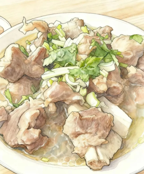 錫林郭勒草原的暮色里,牧人收拾完羊群,便開始料理當日的晚餐。取當年生的羔羊,卸作八塊,投進鐵鍋的沸水里。不添姜蔥,只撒一把粗鹽,待水霧蒸騰時,用長柄勺輕輕撇去浮沫。那肉在鍋中起伏的模樣,頗似白云掠過草場。約莫半個時辰,用匕首刺穿羊腿,見血水轉為清汁便可起鍋。肥瘦相間的肋排最是難得,瘦肉染著淡緋色,肥脂凝作半透明,蘸了野韭花醬送入口中,竟能品出牧草經霜后的清甜。