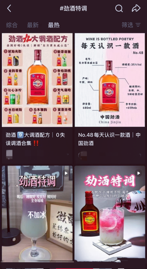 此后,勁牌公司迅速跟進,比如發起勁酒調酒挑戰、勁酒女孩話題、推出霞光粉小方瓶限定款勁酒等,進一步推高了勁酒在年輕群體尤其是女性消費者中的品牌熱度與情感共鳴。