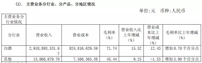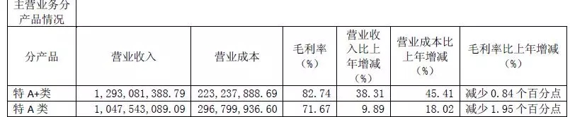 在2017年報中,今世緣方面稱報告期內,白酒營業收入較上年增長15.52%,白酒營業成本較上年增加12.43%;因白酒產品結構持續優化,特A類以上產品產銷兩旺,使得報告期內白酒的營業收入增長率高于營業成本的增長率。