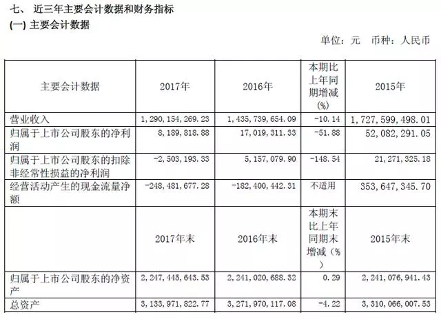 2017年,金種子酒(600199.SH)實現營業收入12.90億元,同比下降10.14%,實現歸屬于上市公司股東的凈利潤為818.98萬元,同比下降51.88%;同時,實現歸屬于上市公司股東的扣除非經常性損益的凈利潤-253.32萬元,為近10年首次虧損。